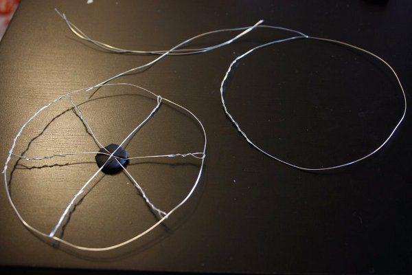 Спицы делают из отрезков проволоки или ниток.