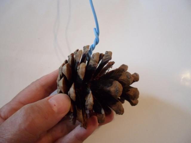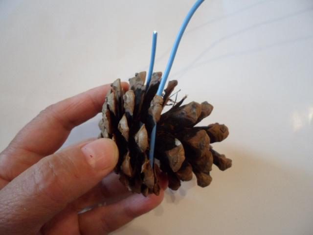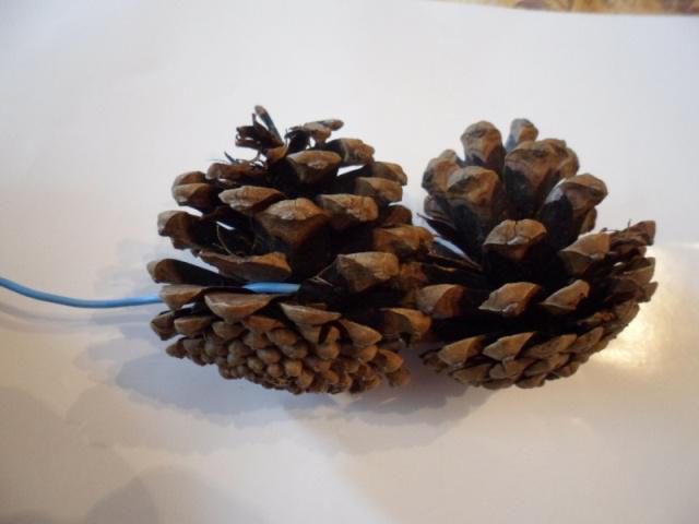 1. Приготовьте шишки и скрепите их между собой жёсткой проволокой.