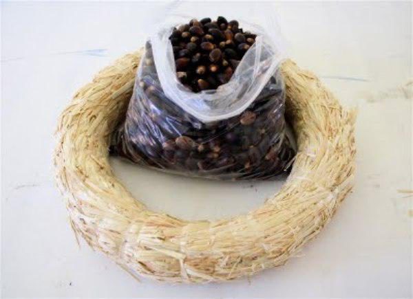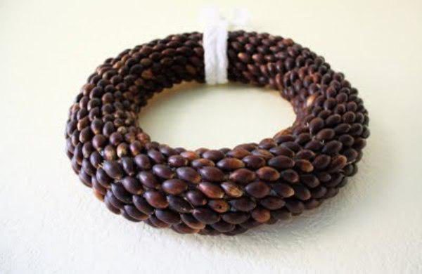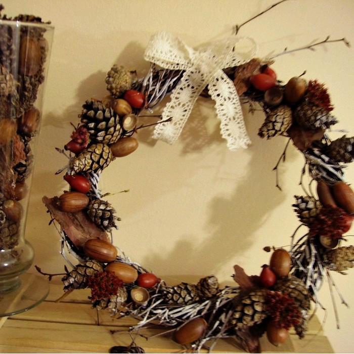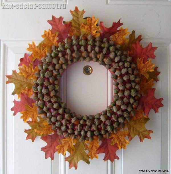 Вот какой венок можно сделать, приклеивая желуди аккуратно к любому основанию!