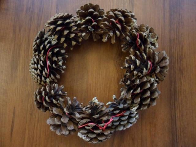 2. Соединяйте шишки и связывайте их в круг.
