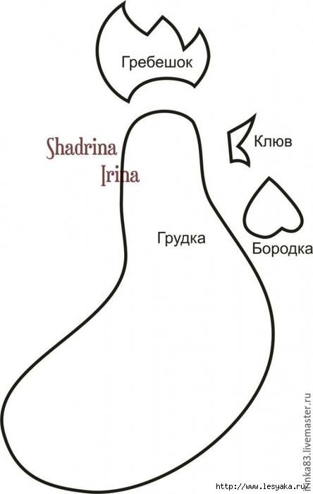 6. Затем вырезаем по шаблону из красного фетра: гребешок, клюв и бородку.