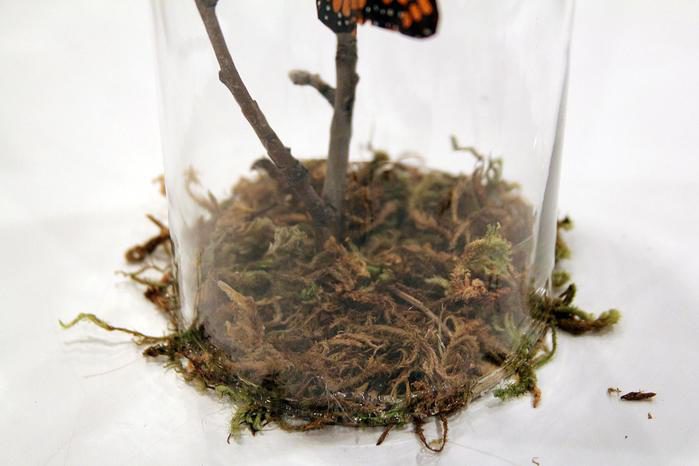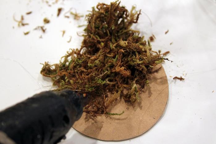 Также вам понадобятся веточки, картонка, мох и горячий клей.