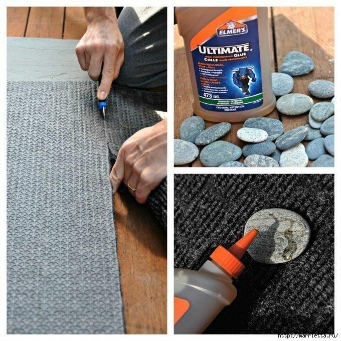 Для создания креативного коврика из гальки вам понадобится ковролин или войлок, и клей