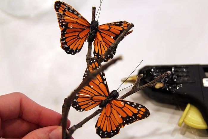 Приклеить к веточкам бабочек