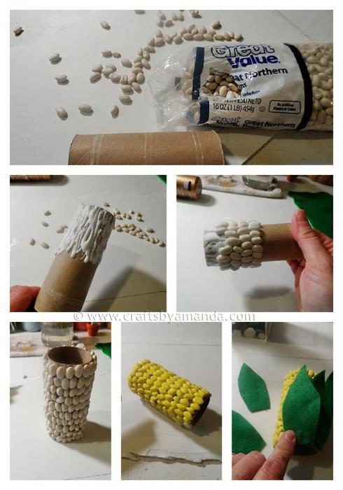 из фасоли, фетра и рулончика от туалетной бумаги