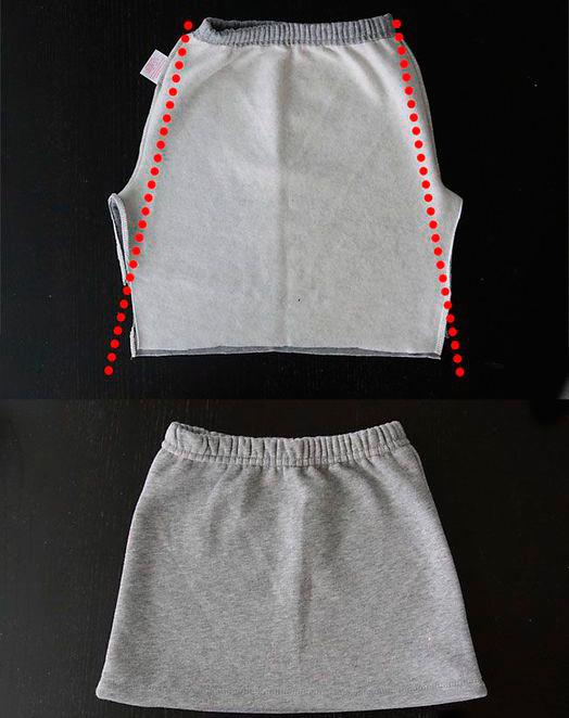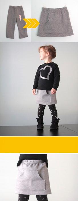Юбочку с карманом-кенгуру можно сделать из спортивных брюк.