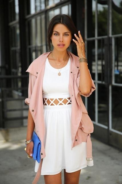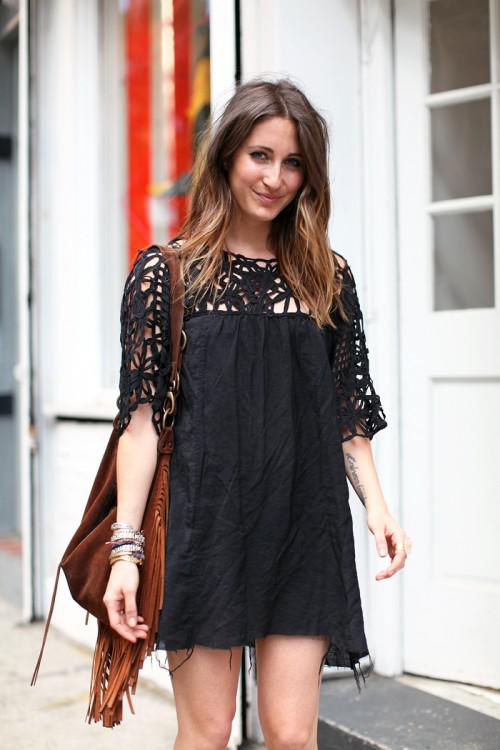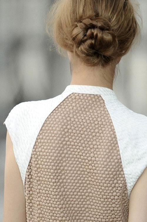 Отлично при жаре + делать просто — выпороть плечи и воротничок, часть ткани вырезать, оставляя на подгибку по 1,5 см (можно вырезать, как тут — по «американской пройме» — очень мило, можно как угодно) — заменить ее сеткой, после чего все аккуратно вшить на место. Вдохновляющая такая картинка, да? А представьте все то же самое с летним жакетом от делового костюма или строгим платьем — футляр!))