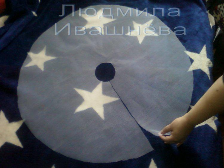 Дальше, я разметила эту окружность на много точек (чем больше, тем лучше), например, через каждый сантиметр. И из каждой этой точки я откладывала в длину 32 см, из них 30 см это длина волана в готовом виде, 1 см вверху волана - на припуск шва притачивания и ещё 1 см на обработку низа.
