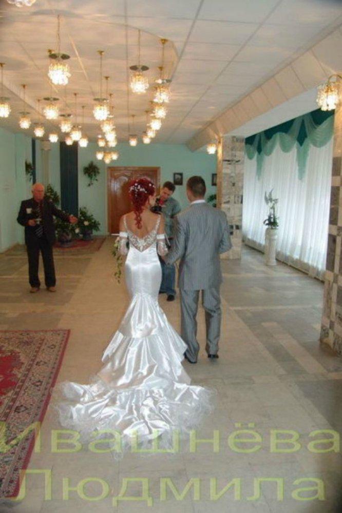 Напомню, а для тех кто не знает, скажу, что при покрое "рыбка" ,платье зауживается от линии бёдер к коленям, а от колена резко клешится. Для того, чтобы низ юбки был на контрасте объёмов очень пышным, нижних воланов нужно гораздо больше, чем при крое "гвоздика". Не менее 3-5 слоёв, и это ещё будет зависеть от толщины лески, которой вы будете обрабатывать воланы, и от жёсткости сетки.