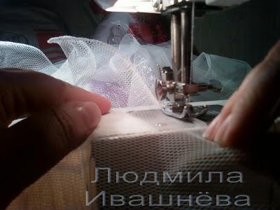 И ещё одна тонкость. Часто задаваемый вопрос - а как нашиваются эти воланы - один ниже другого? Нет. Все ряды воланов нашиваются в одно место, т.е. по одной линии. Из-за собственной пышности они сами раскрываются "гвоздичкой" и смотрятся очень красиво.