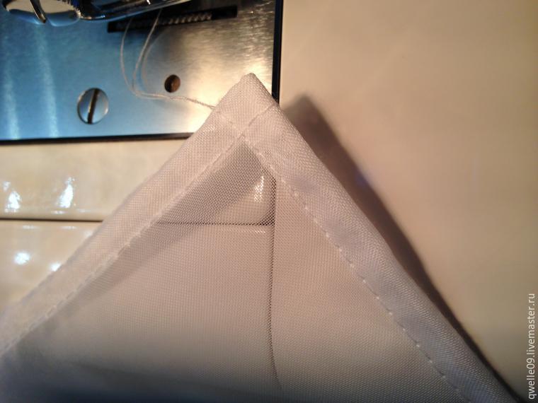 Вот такая подгибка с двух сторон должна получиться. Остальные стороны подшиваем также.