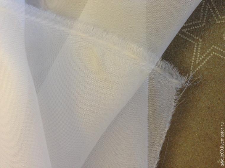 Обычно для занавесок или для тюлевых штор используют синтетические ткани: органза, вуаль и т.п. Состав этих тканей почти всегда 100% полиэстер. Одной из замечательных способностей таких тканей является то, что они очень легко рвутся руками, то есть нет нужды их резать ножницами, сделали надрез на отмеренном и отмеченном месте и дальше рвите руками до конца полотна. Это очень удобно, так как всегда получается ровный край, пусть даже с небольшой бахромой.