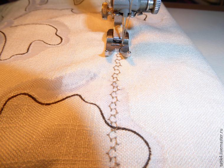 Низ шторки я прошиваю швом 5 см. Шов делаю сквозным.