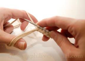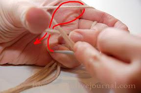 Итак, берем нить от клубка и складываем ее втрое.
