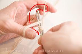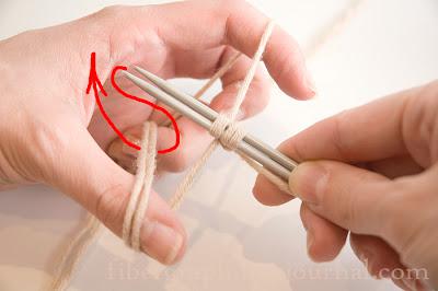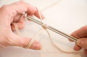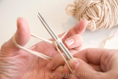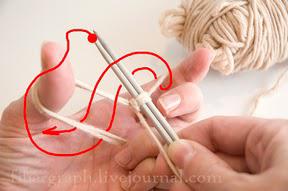 Помещаем спицы в петлю большого пальца движением сверху вниз…