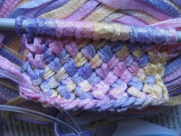 1 ряд (лицевой) - 1 кром.. *провязываем сначала вторую лицевой , затем первую лицевой, снимаем со спицы и так до самого конца ряда*, кромочная.
