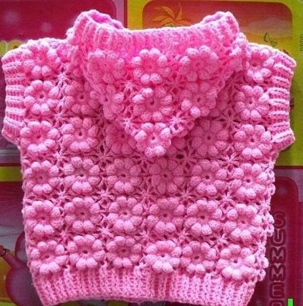 Жилет "Пухлые цветочки" крючком