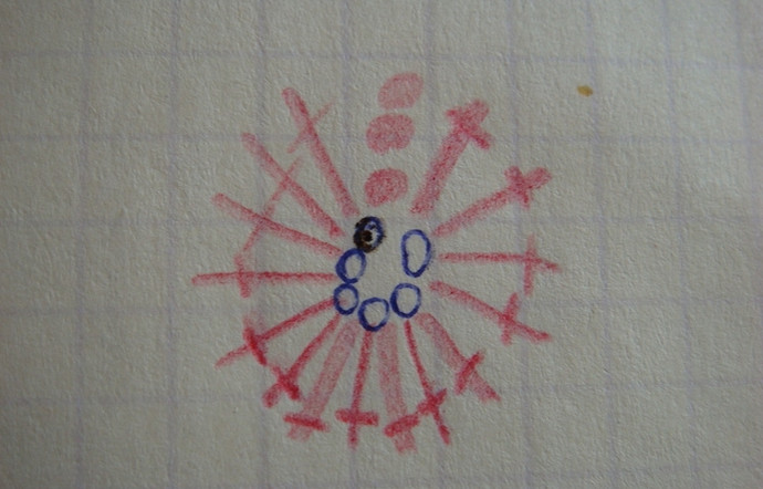 Капюшон состоит из 4-х рядов по 6 цветков и 5-го ряда из 3-х цветков.