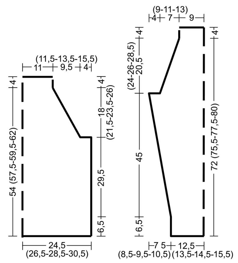 Через 20,5 (24 – 26) 28,5 см = 62 (72 – 78) 86 р. от начала регланных скосов оставшиеся 42 п. временно оставить.