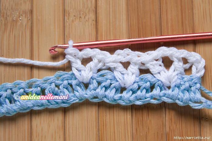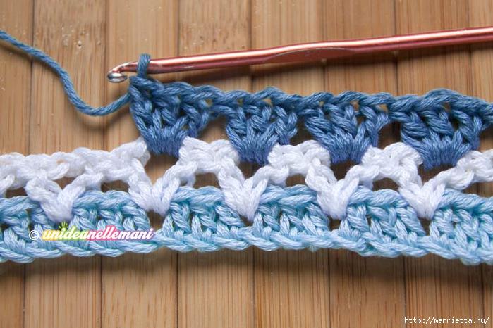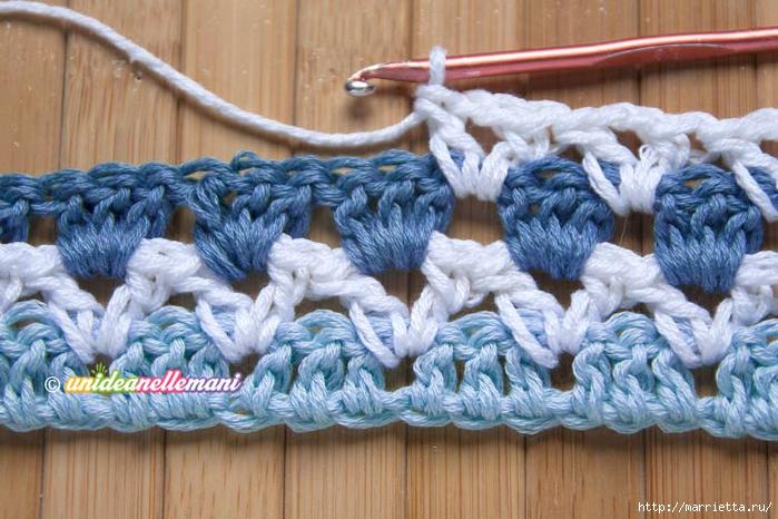 Представляем вашему вниманию интересный трехцветный узор крючком. В данном случае, он выполняется для вязания детского пледа, но думаю, такое чудесное решение пригодится и в других вязаных изделиях! Смотрите, учитесь и вяжите на здоровье!