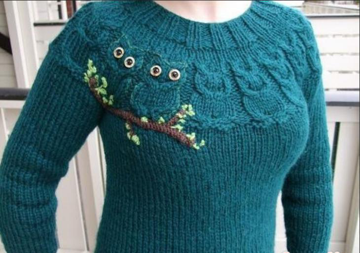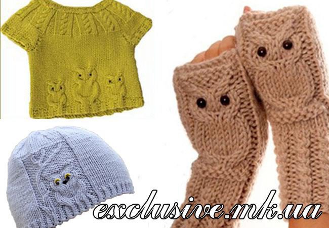 Узор "Сова" спицами и его применение на вещах