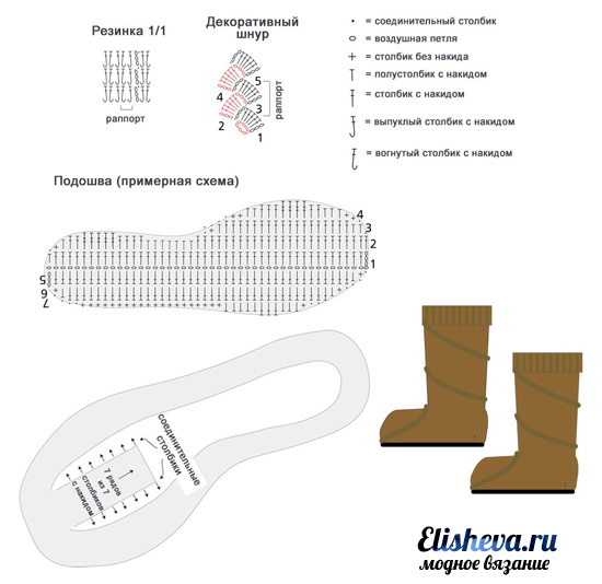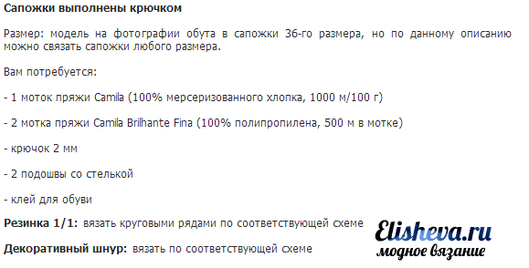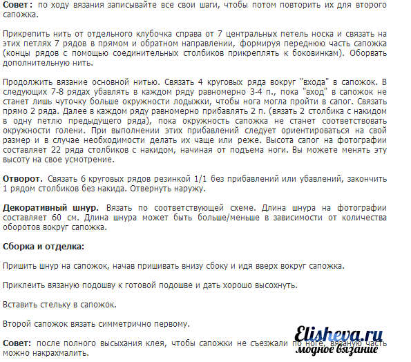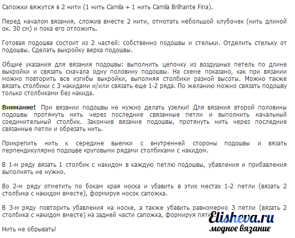 Связать такую модель можно вполне самостоятельно, много времени работа над такой «обувкой» у Вас не отнимет