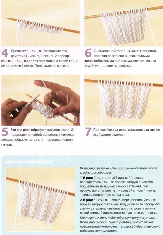 Узоры вязания: резинка односторонняя "Змейка"