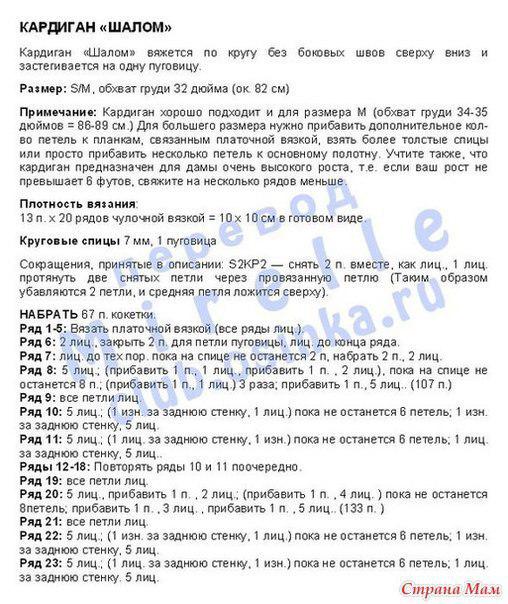 Описание и техника вязания кардигана: