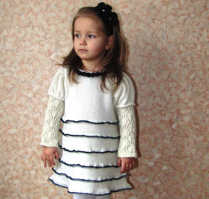 Вязаное платье для девочки на французский манер
