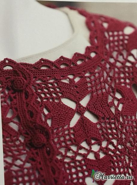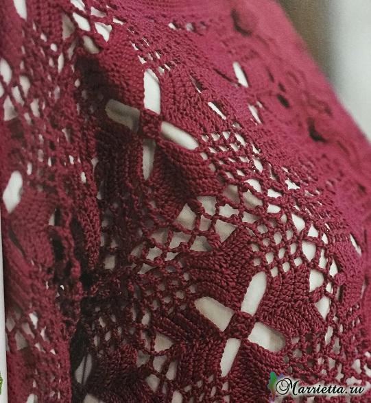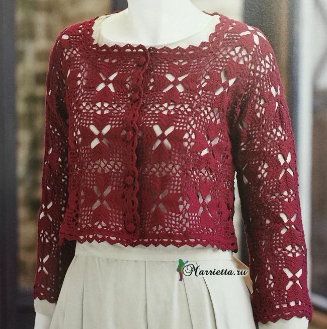 Жакет крючком из квадратных ажурных мотивов
