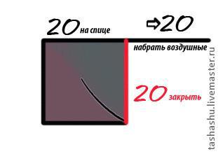 Привязываем к нему следующий. Для этого закрываем 20 петель и набираем на спицу 20 петель воздушных: