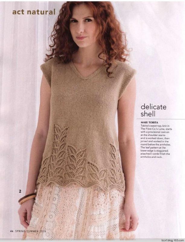 Красивый топ спицами с узором по нижнему краю «листья» понравится всем, кто хочет выглядеть элегантно и модно! Ниже представлены выкройка и схемы вязания.