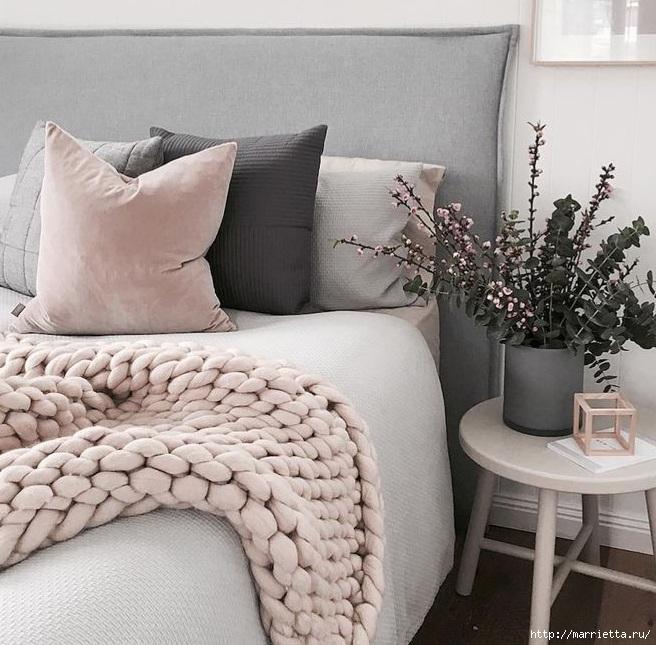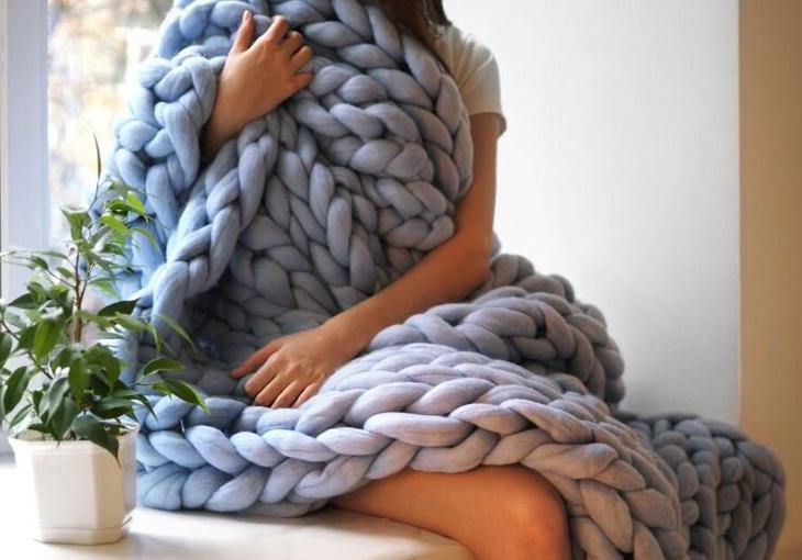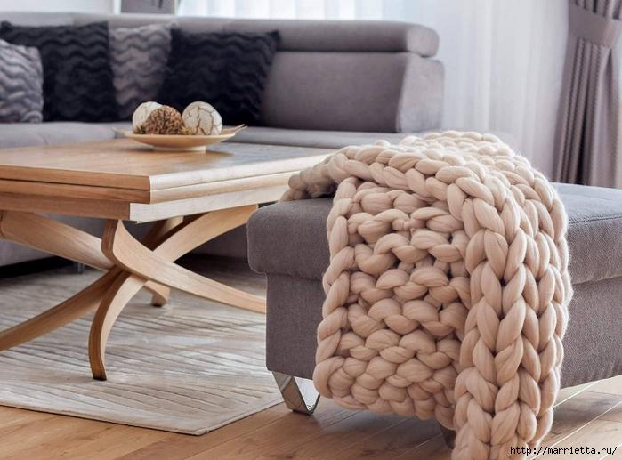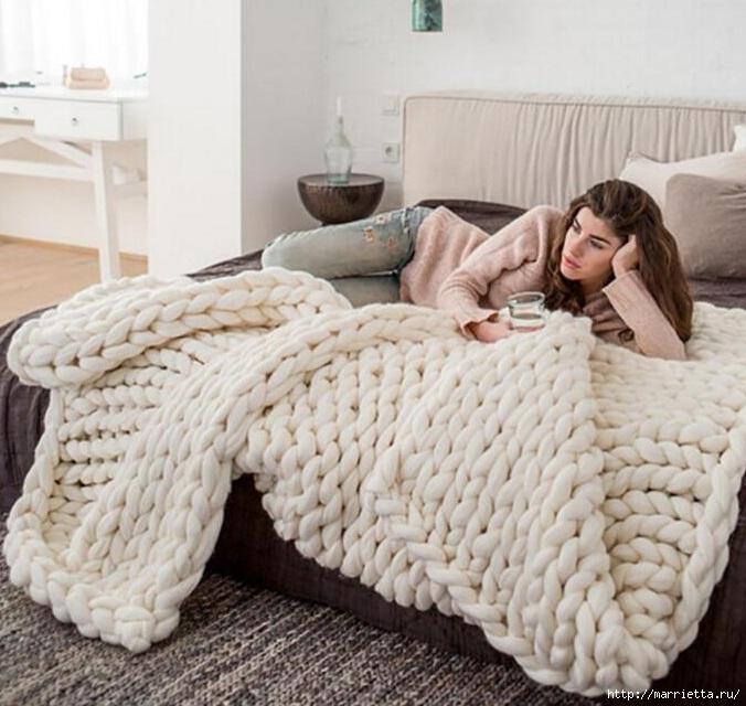 Вязание на руках - объемный плед из толстой пряжи