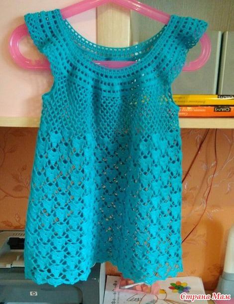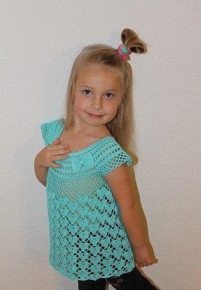 Увидела в сети эту вязаную бирюзовую тунику для девочки и не могла удержаться, чтобы не показать вам такую прелесть! У кого есть дочки, внучки - дерзайте, вяжите!