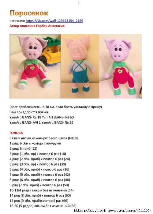 Вязаная игрушка "Поросёнок"