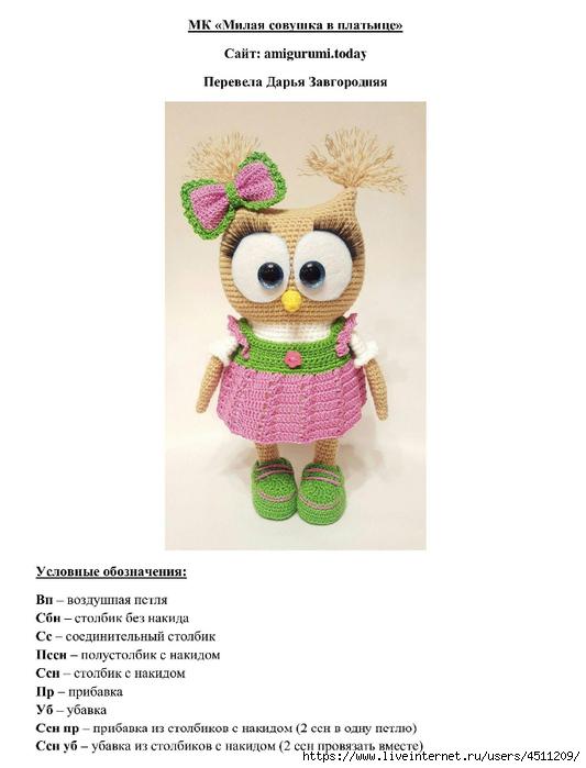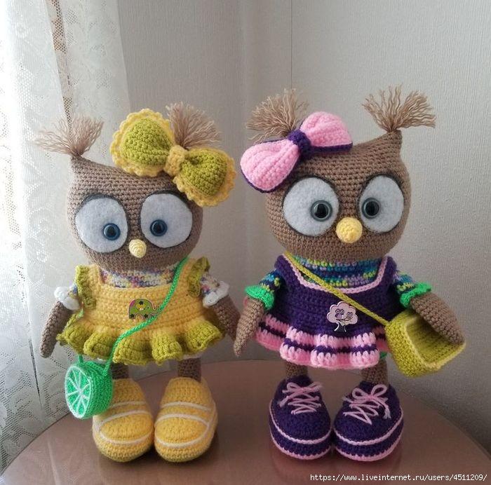 Вязаная игрушка "Совушка в платьице"