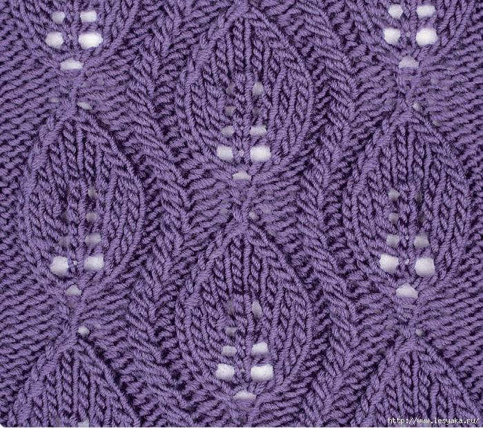 "Округлые листочки" - эффектный ажурный узор спицами