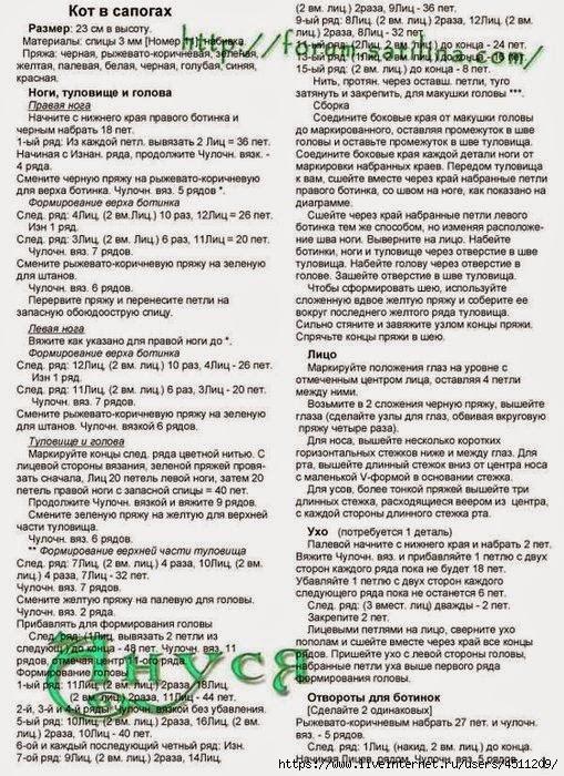 Вязаная игрушка "Кот в сапогах"