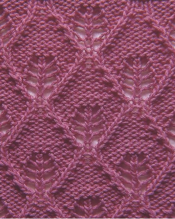 Классический узор из сплошных ажурных листьев отлично смотрится на всех видах изделий. Его можно сочетать с гладью или платочной вязкой.
