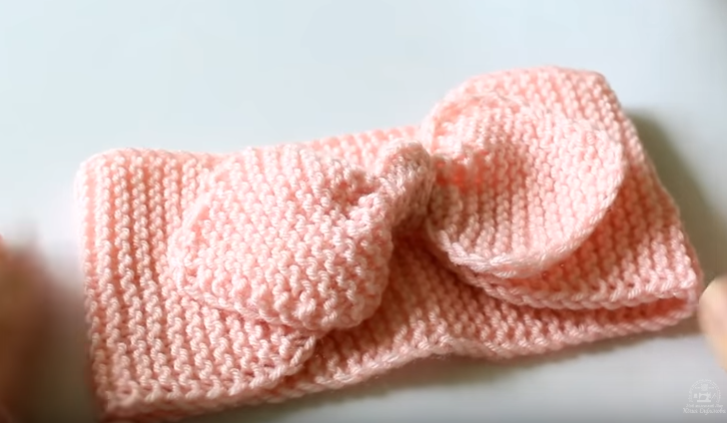 Вязаная повязка на голову с бантом 2