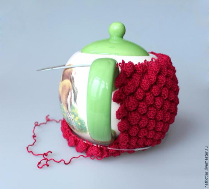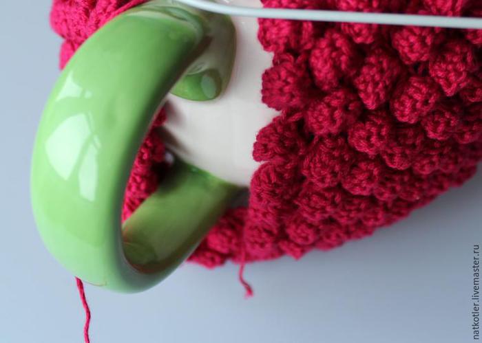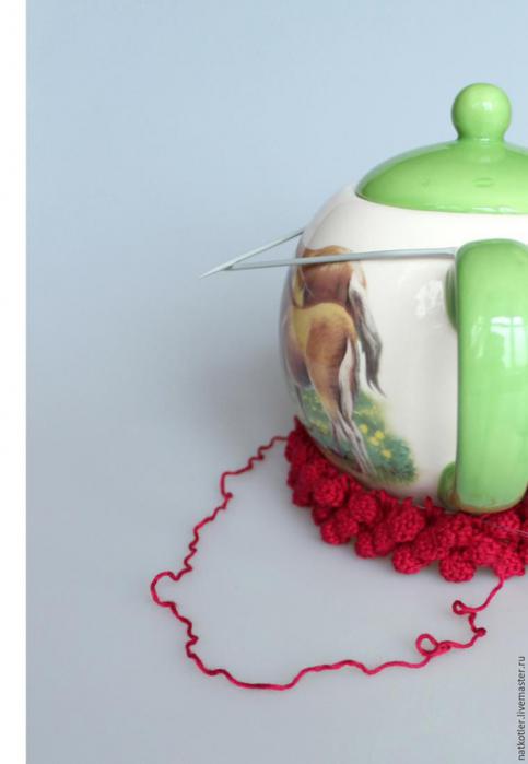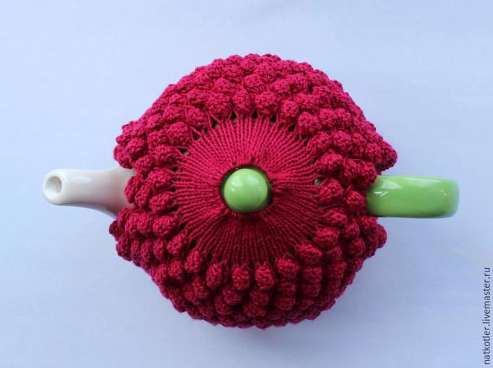 Вязаная грелка для чайника "Малиновый вкус" - пошаговый мастер-класс