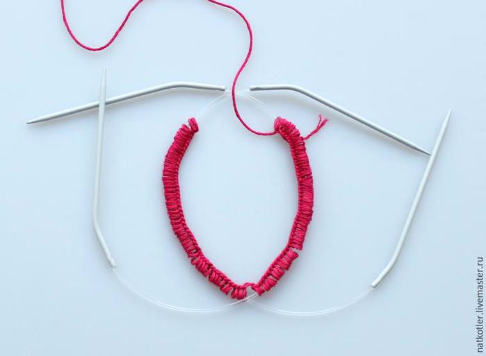 Так протащить её через все семь петель без потерь будет легче. Можно также использовать для этого крючок, но такой ход увеличит затраты времени на работу.