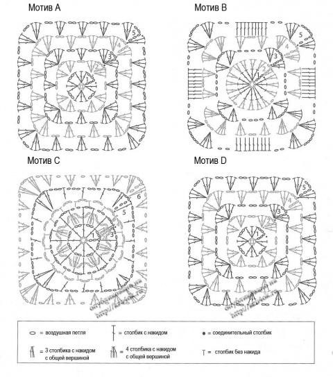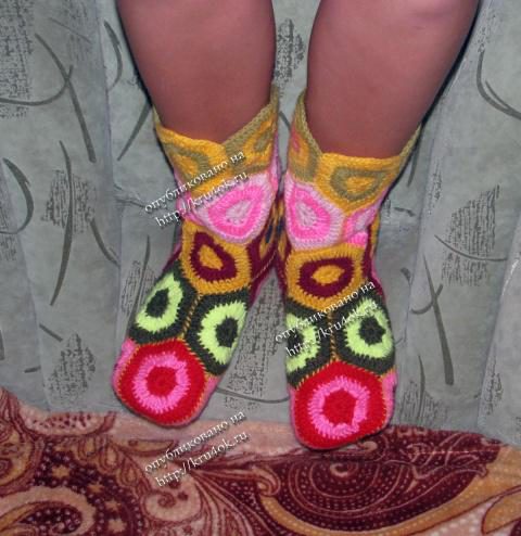 Сапожки связаны из мотивов. Схемы могут быть разные.
