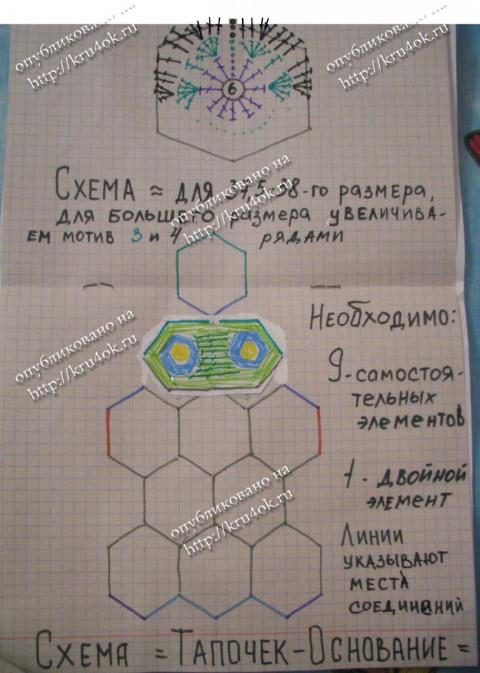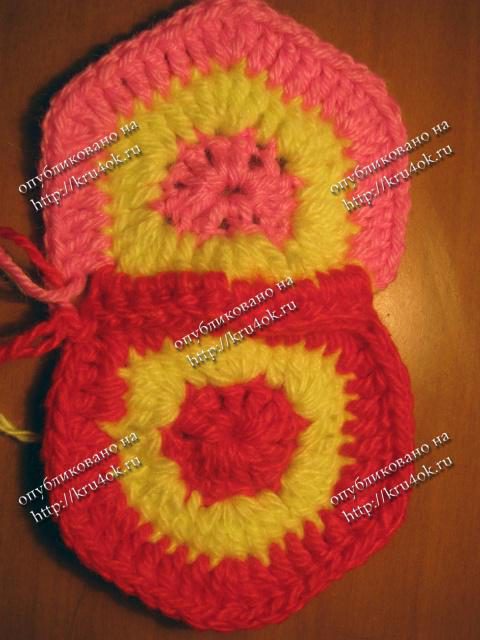 Вяжется мотив – шестиугольник – 9 элементов и 1-двойной элемент – это наше основание, а дальше на ваше усмотрение – чем больше элементов вы сделаете, тем выше будет изделие.