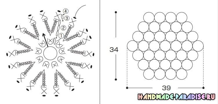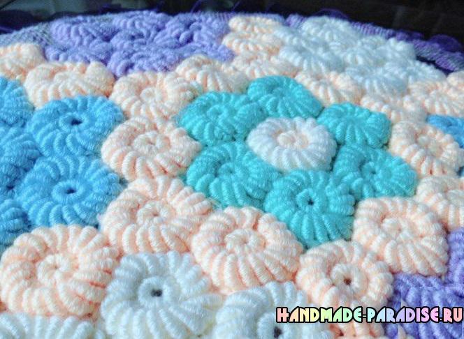 Круглые цветы витыми столбиками можно применить для вязания крючком сидушки или коврика.