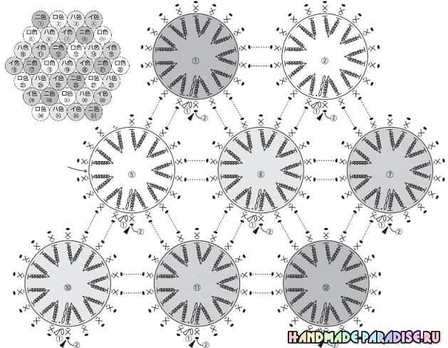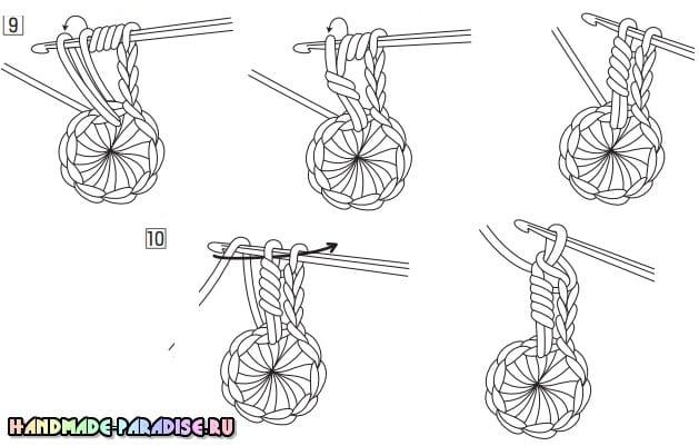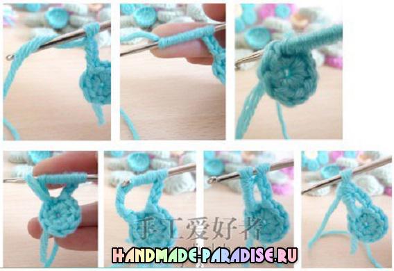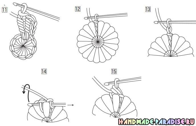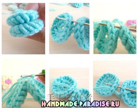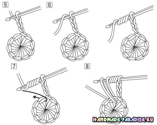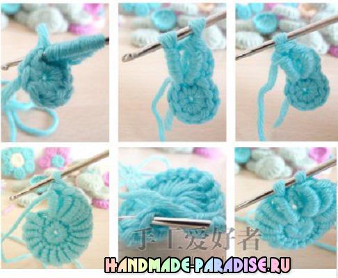 Смотрите последовательность вязания крючком цветочка витыми столбиками. Все картинки кликабельны — увеличиваются при нажатии.
