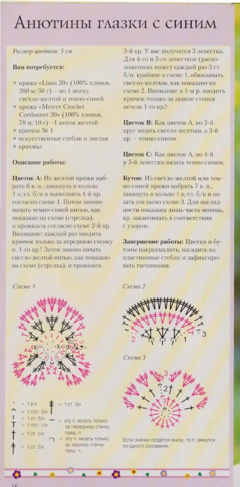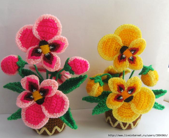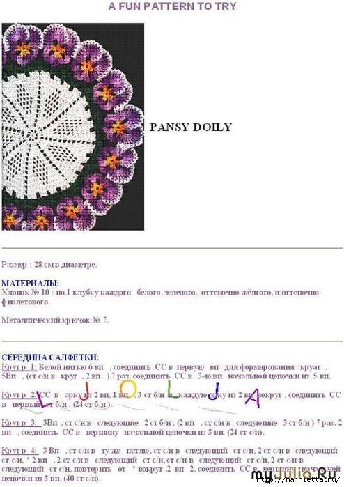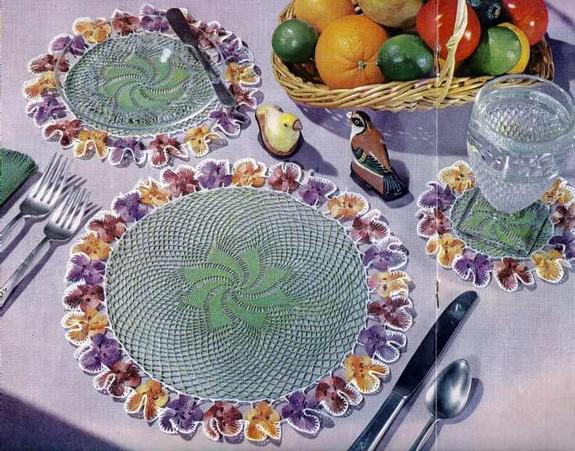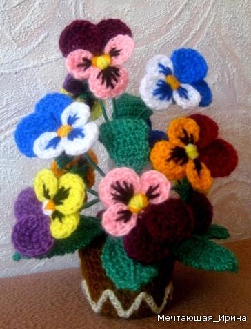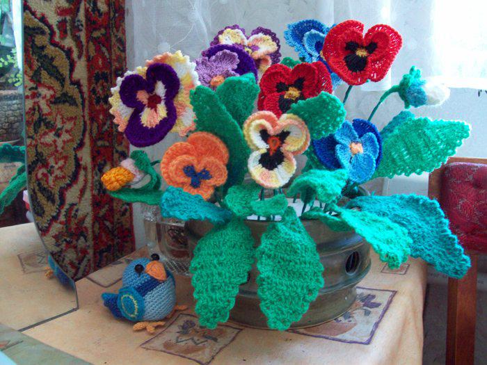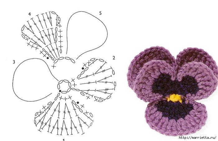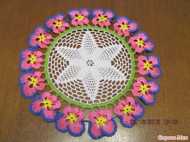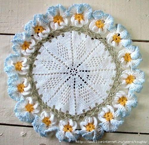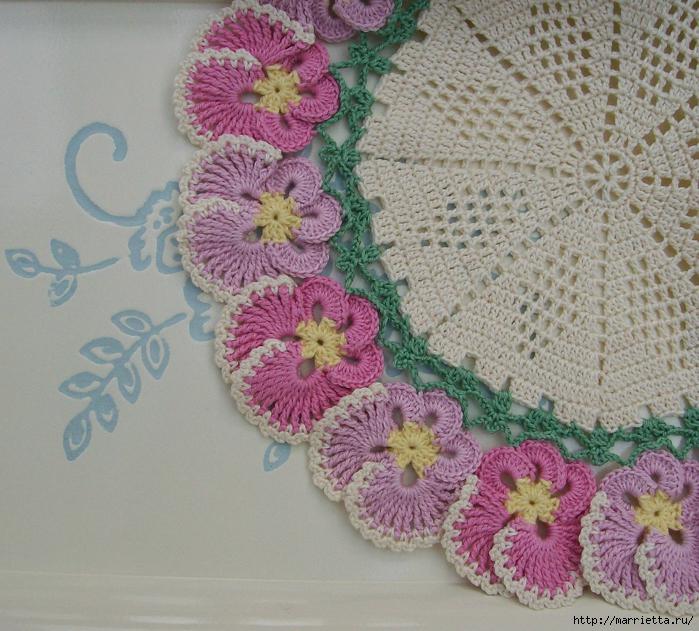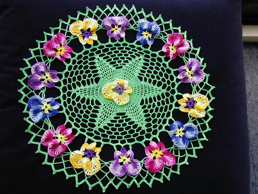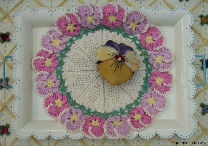 Салфетки с анютиными глазками. Схемы вязания и идеи применения