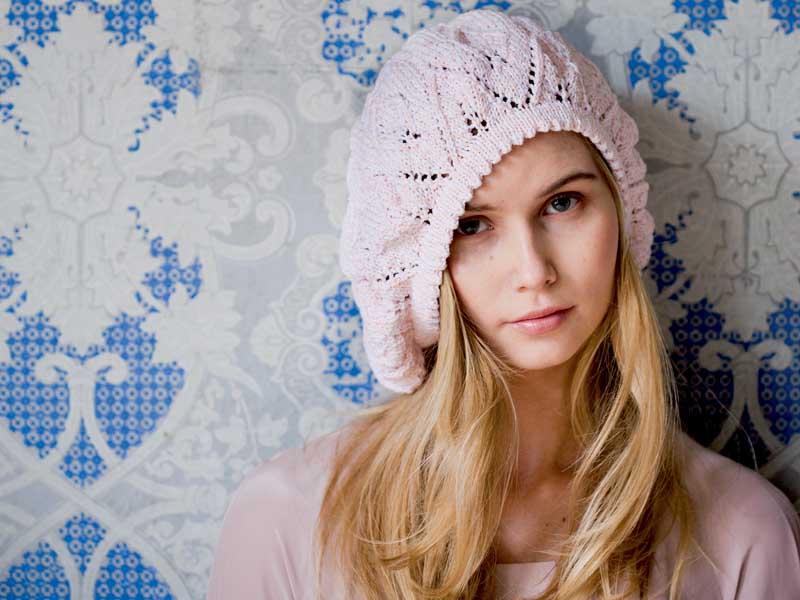 Ажурный розовый берет