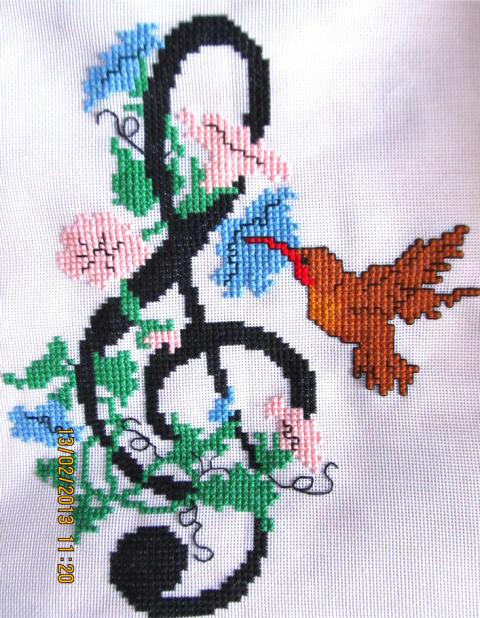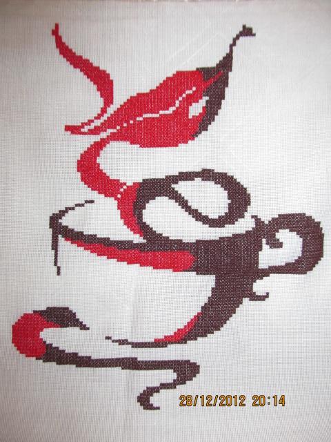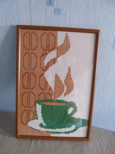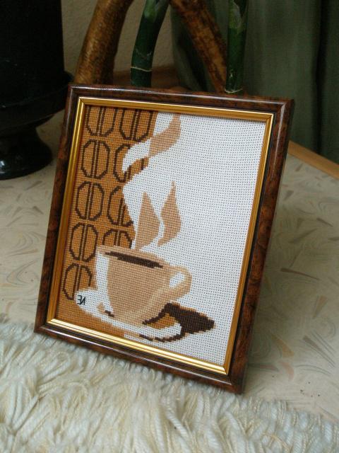 "Чашка кофе" подарена знакомой, вышивка выполнена в цветовой гамме как на оригинале