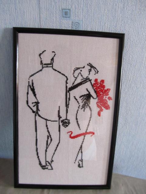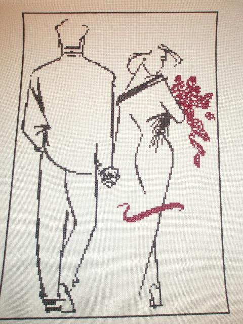 "Уходящая пара" с бордовыми цветами болгарский крест, графика